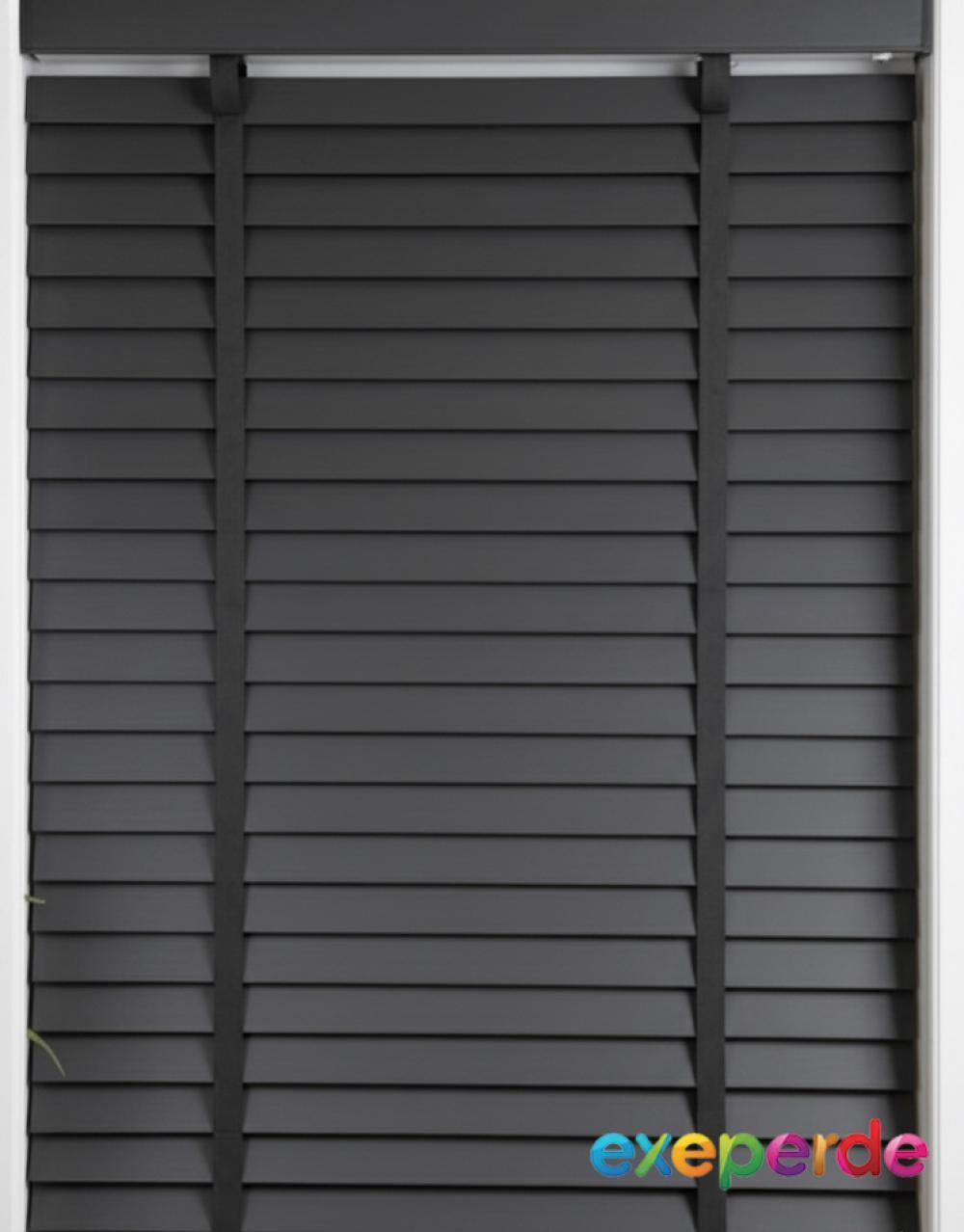 Bu Antrasit Ahşap Jaluzi modeli, uzun yıllar boyunca rengini ve formunu korumak üzere UV ışınlarına ve neme karşı dayanıklı özel bir boya ve vernikle kaplanmıştır.