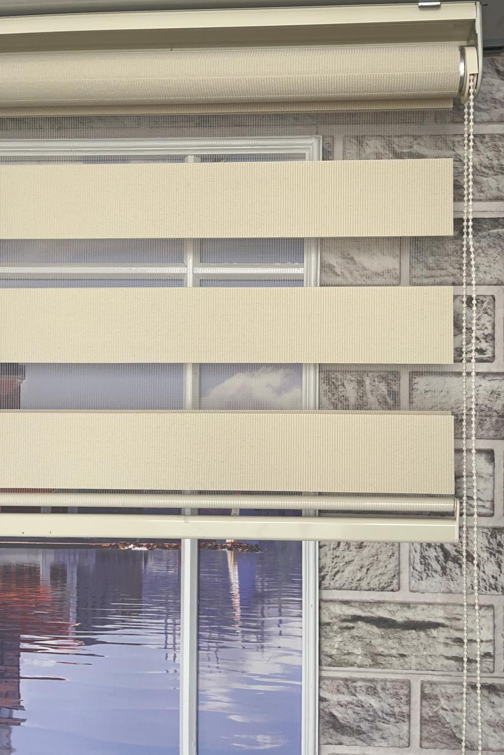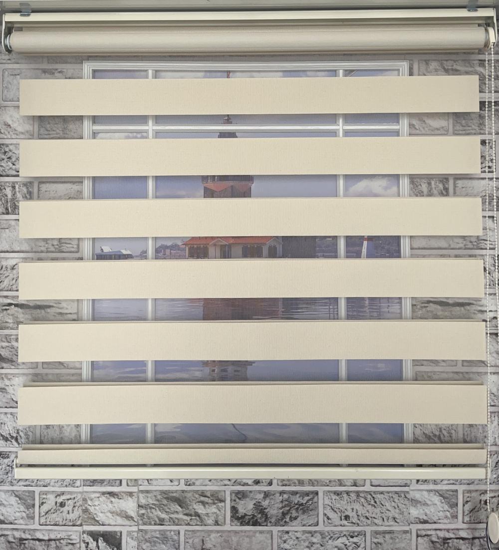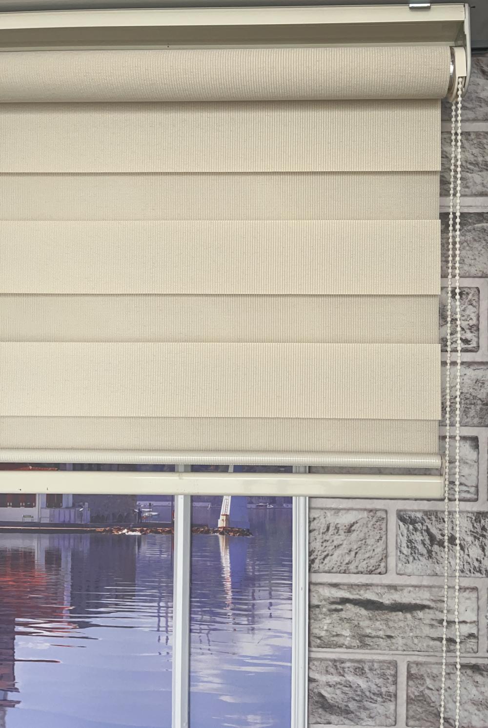 Kumaş: Yüksek dayanıklılığa sahip polyester bej düz zebra perde kumaşı. (Uzun süreli kullanım için ideal, kolay silinebilir.)