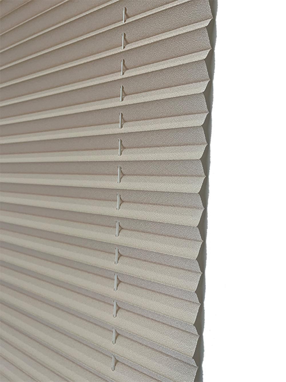Kumaş: Yüksek yoğunluklu, dayanıklı polyester bej pliseli perde kumaşı. (Kolay silinebilir, nemden etkilenmez ve rengi solmaya karşı dirençlidir.)