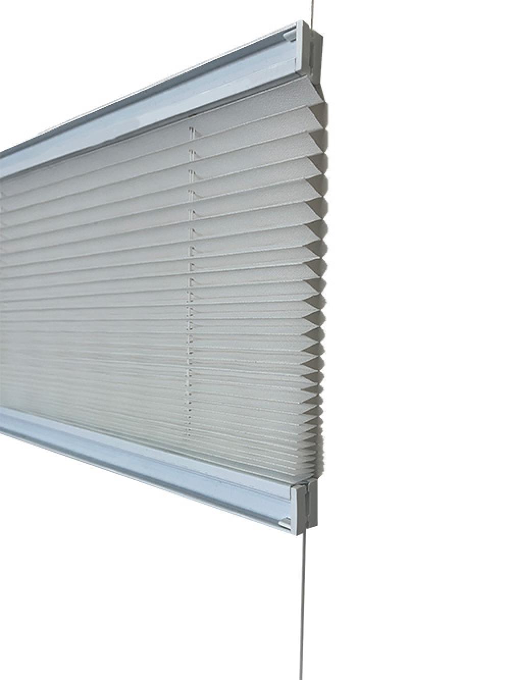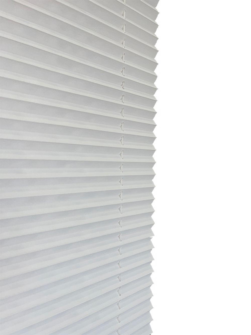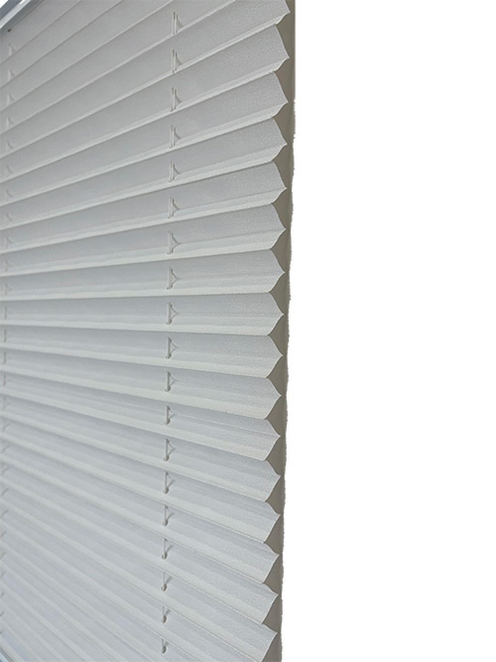 Kumaş: Yüksek yoğunluklu, dayanıklı polyester beyaz pliseli perde kumaşı. (Kolay temizlenebilir ve neme dayanıklı yapısıyla banyo/mutfak için de uygundur.)
