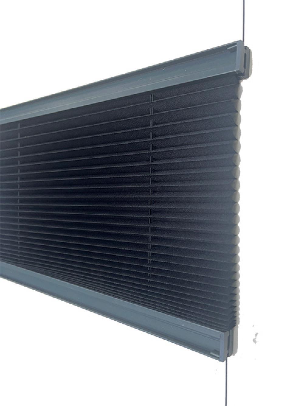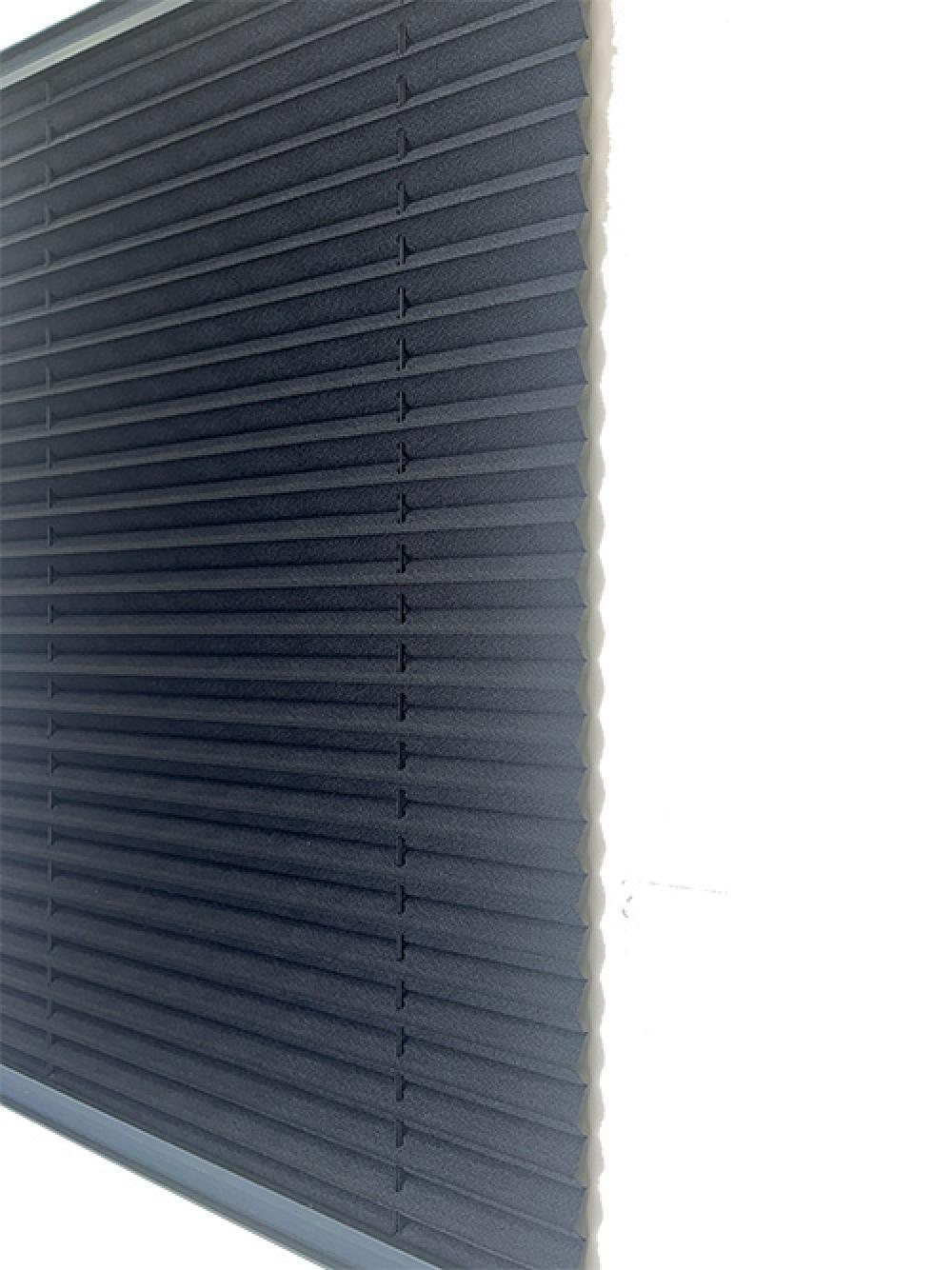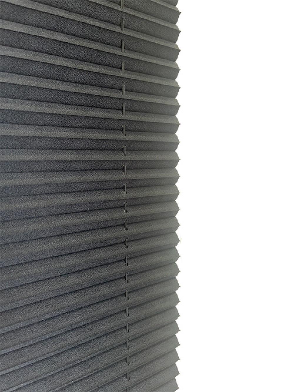 Kumaş: Yüksek yoğunluklu, dayanıklı polyester siyah pliseli perde kumaşı. (Kolay silinebilir, rengi solmaya karşı dirençlidir.)